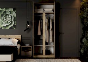 Двухстворчатый шкаф ЛАВЕНА — идеальное решение для организации пространства в спальне, прихожей или гардеробной. Этот стильный и функциональный шкаф сочетает в себе продуманную конструкцию и современный дизайн, создавая уют и порядок в вашем доме.