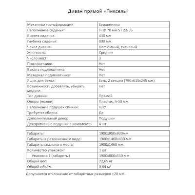 Диван Пиксель (Аквилон) продается в интернет-магазине mebelin-chekhov.ru по цене 30 299 руб. Есть доставка по Чехову и Московской области. Возможность подъема на этаж и сборки уточняйте у менеджера по телефону 8(800)505-27-11.