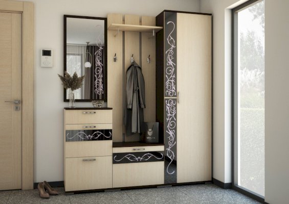 Створка шкафа может вешаться как на правую, так и на левую сторону. Шкаф имеет секцию с выдвижной штангой и полками. Для дополнительной фиксации шкаф следует крепить к стене на плоские навесы посредством дюбель гвоздей.