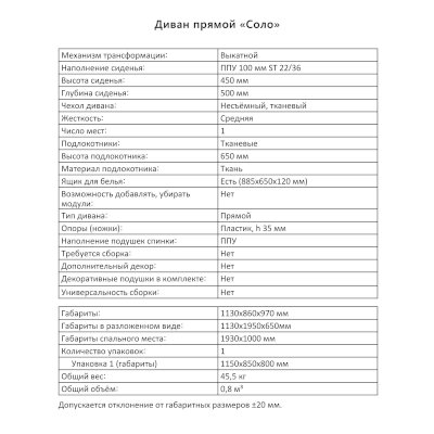Диван Соло (Аквилон) продается в интернет-магазине mebelin-chekhov.ru по цене 27 077 руб. Есть доставка по Чехову и Московской области. Возможность подъема на этаж и сборки уточняйте у менеджера по телефону 8(800)505-27-11.